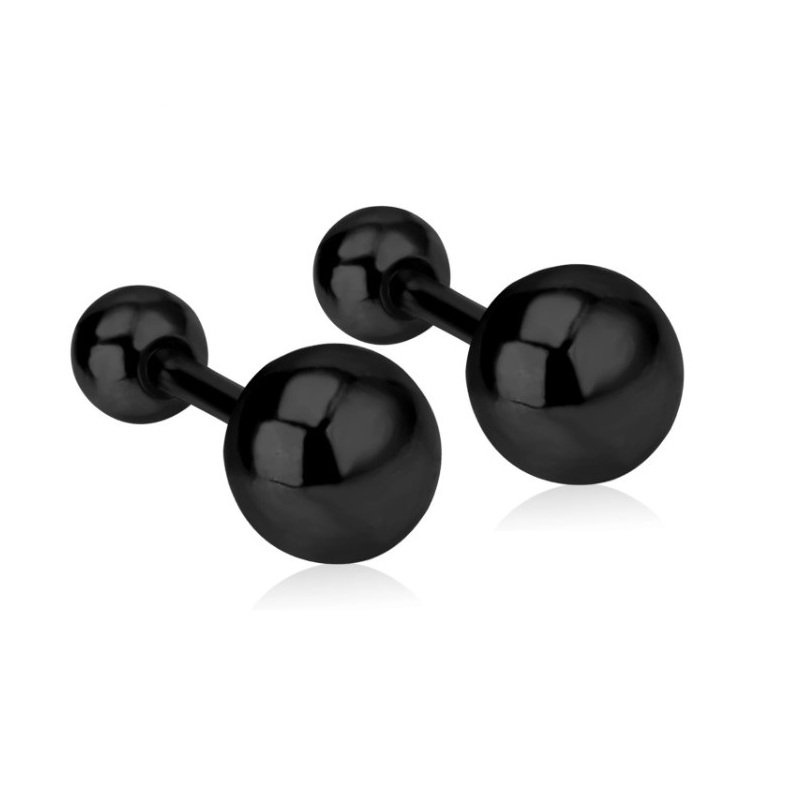 Ocelové punkové náušnice BLACK DOUBLE BALL jsou šroubovací na jedné straně.