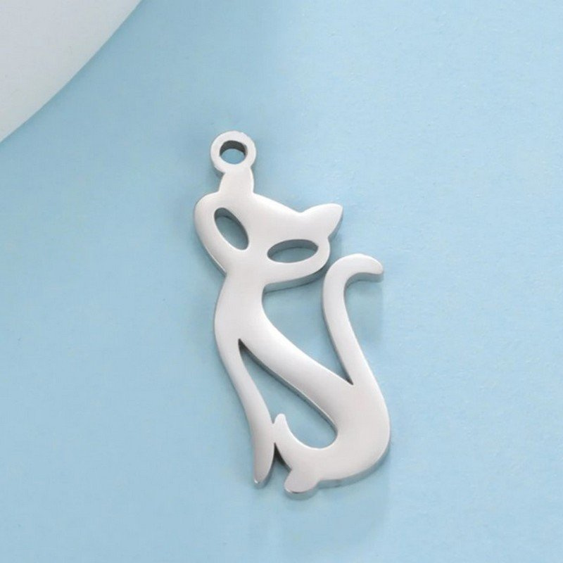 Krásný přívěsek ve tvaru elegantní kočky je vyroben z chirurgické oceli 316L.