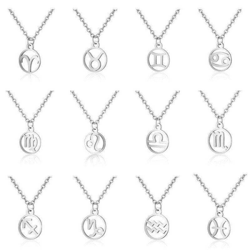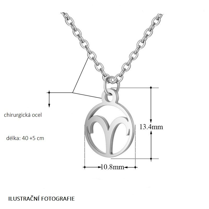 Ocelový náhrdelník s drobným přívěskem v podobě znamení Blíženců.