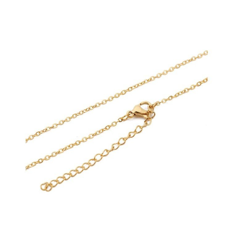 Ocelový tenký řetízek typu ANKER s možností prodloužení o dalších 5 centimetrů ve zlaté barvě je vyroben z chirurgické oceli.