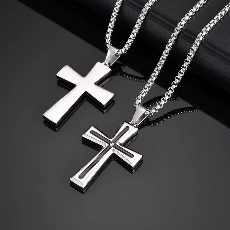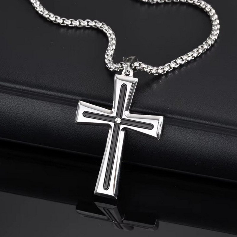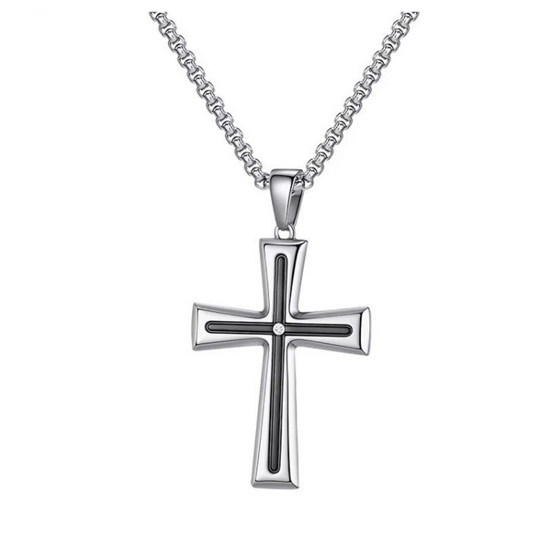 Pánský náhrdelník s křížem. Kříž je vyrobený z kvalitní vyleštěné chirurgické oceli a je barven smaltem. Přívěsek je dodáván na klasickém řetízku délky 56cm.