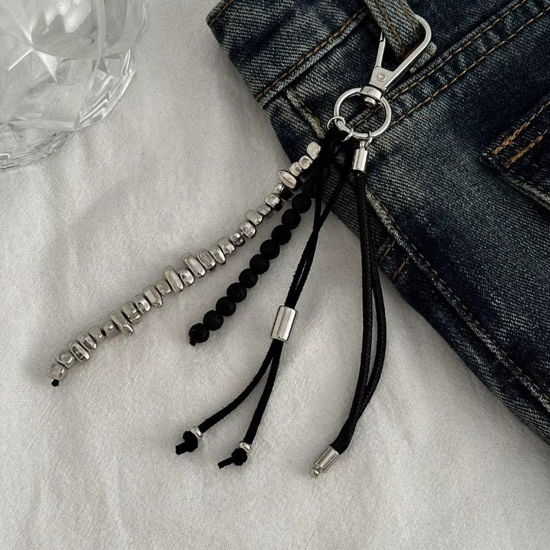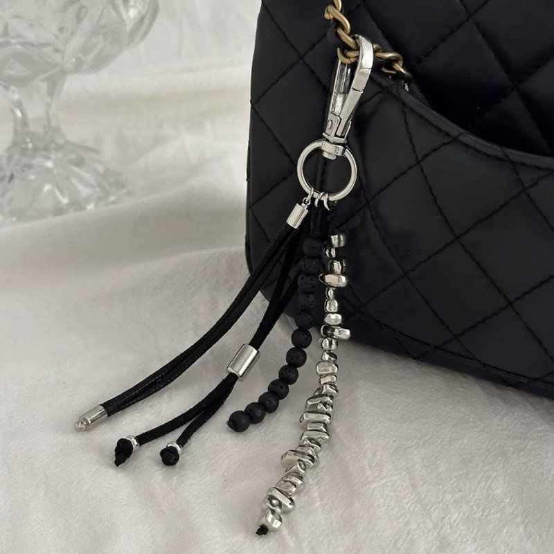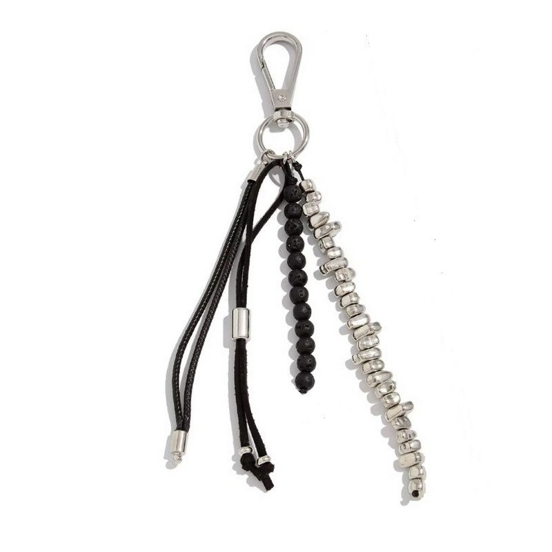 Krásná klíčenka/přívěsek na kabelku jevyrobena z textilu, kovu a plastu.