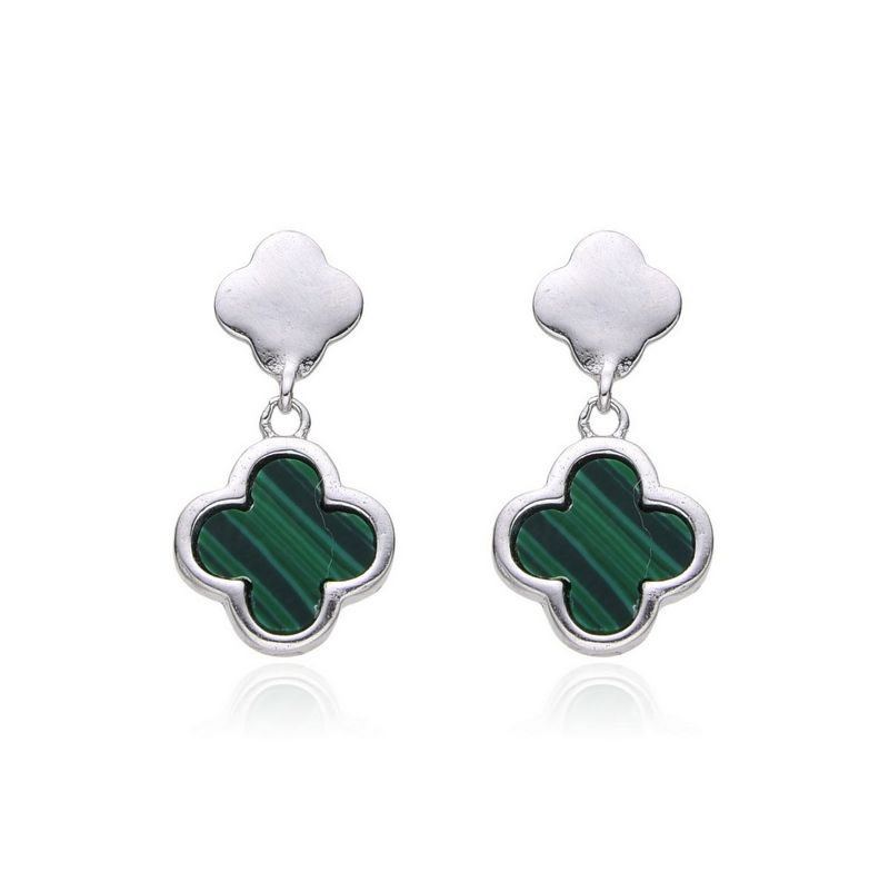 Stříbrné náušnice se zeleným kamenem.