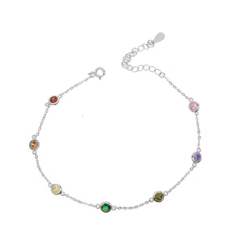 Krásný jemný stříbrný řetízek s barevnými kubickými zirkony.